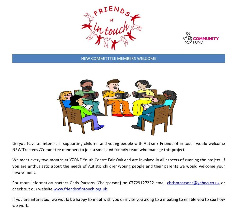 Are you interested? by findsofintouch | Jul 17, 2025 | Friends of In Touch News | 0 comments The current trustees of ‘Friends of in touch’ are looking for new committee members and trustees to join them. Submit a Comment Cancel replyYour email address will not be published. Required fields are marked *Comment * Name * Email * Website Save my name, email, and website in this browser for the next time I comment. Δ